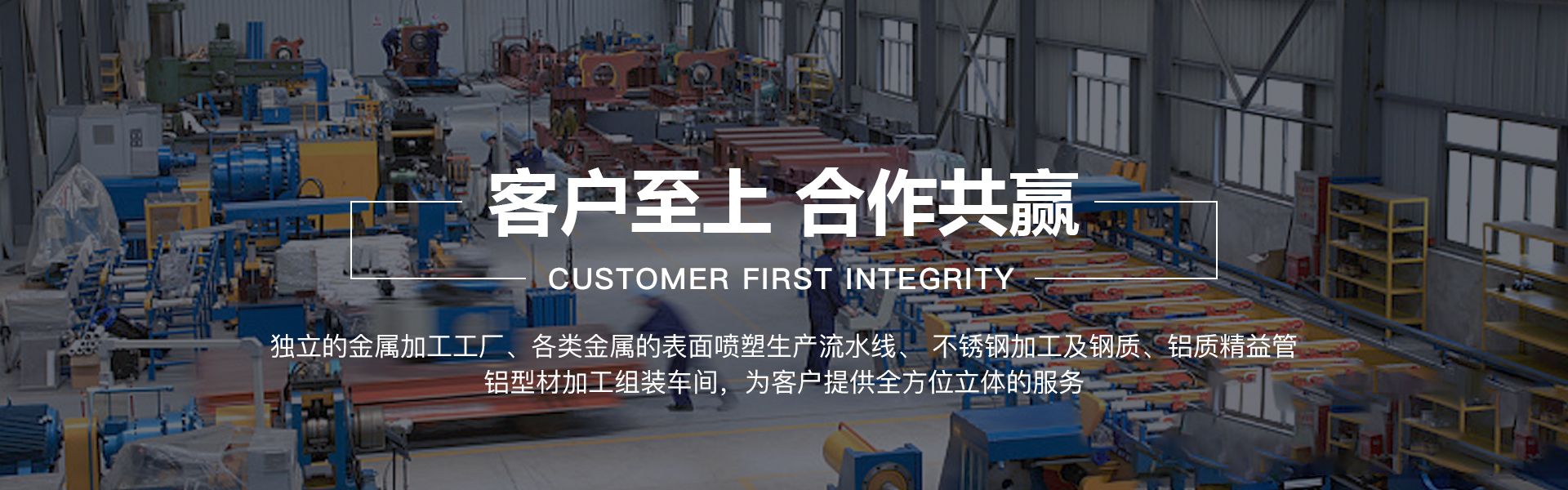 重慶令越羽機(jī)械有限公司成立于2016年,公司位于重慶市北碚區(qū)蔡家崗產(chǎn)業(yè)園,地理位置優(yōu)越,我公司集技術(shù)研發(fā)、生產(chǎn)制造、銷售、售后服務(wù)于一體,有獨(dú)立的金屬加工工廠、各類金屬的表面噴塑生產(chǎn)流水線、 不銹鋼加工及鋼質(zhì)、鋁質(zhì)精益管、鋁型材加工組裝車間,為客戶提供全方位立體的服務(wù)。